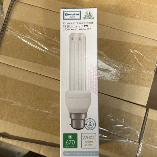 10 x Crompton 4023 Compact Fluorescent T4 Stick Lamps 2700K BC-B22d - 11 Watt