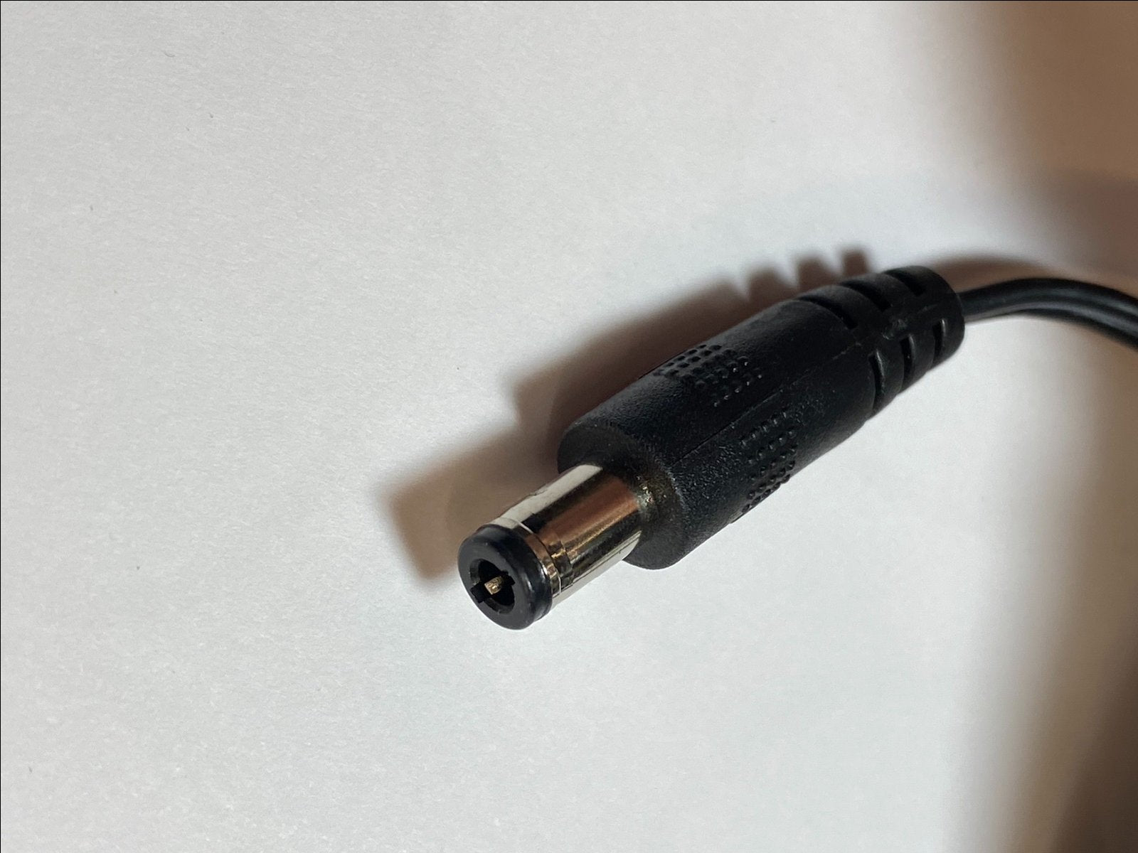 Connector = 5.5mm x 2.1mm/2.5mm (inner spring which closes to 2.1mm and opens to 2.5mm)