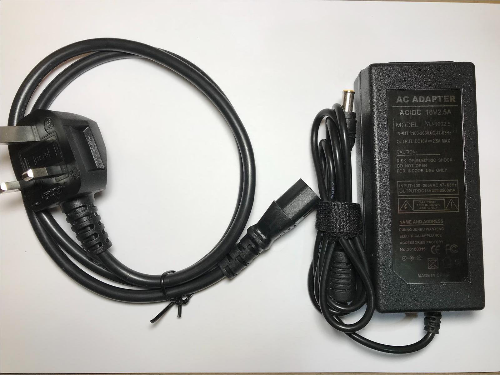 Output = 16V 2.5A (2.5A is perfect for 2.5A and below as amperage isnt forced)