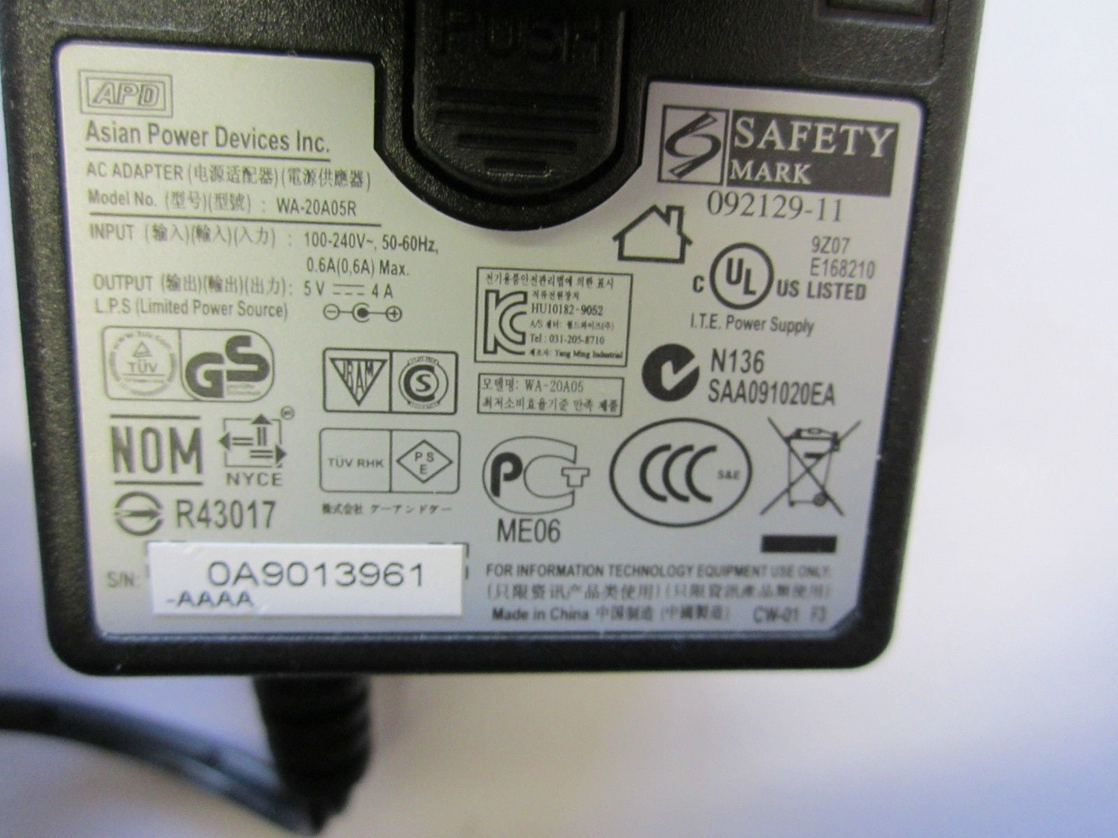 5V 4A Genuine APD Asian Power Devices Inc AC Adaptor WA-20A05R AC-DC ADAPTOR