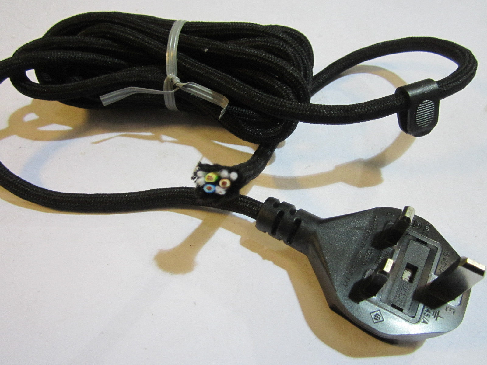Black Bosch Steam Iron Braided Heat Resistant 3 Core Cable Lead Flex UK Plug