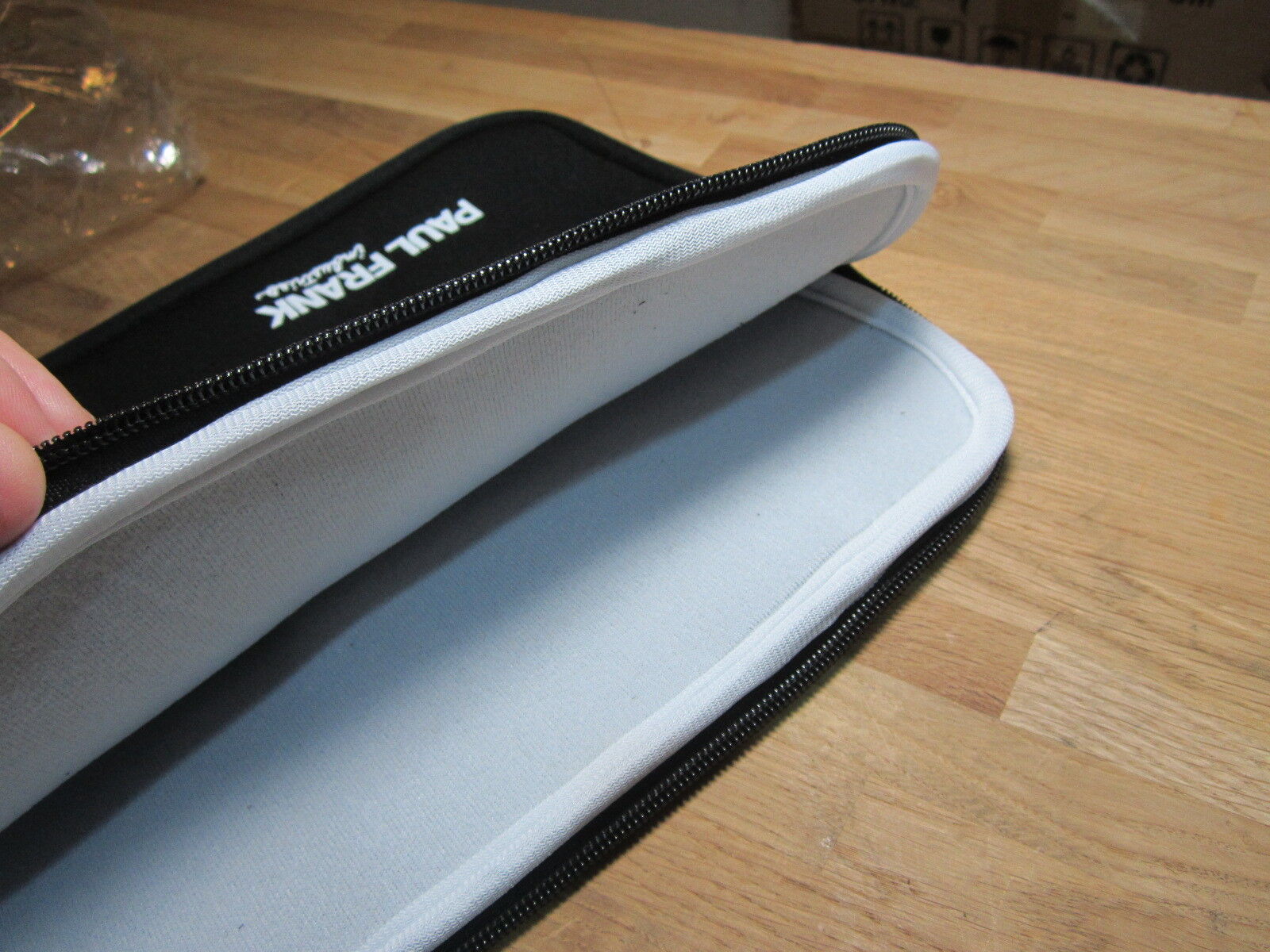 It has 2 Carry Handles which attach together with Velcro, 2 Zipped Sections with Nice Paul Frank Zip Rubbers.