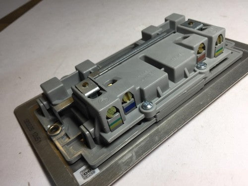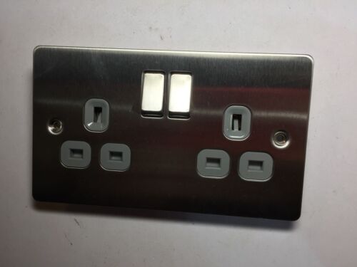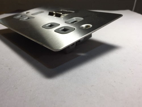 Black Nikel Flat Plate Double Plug Socket 2 Gang 13 Amp