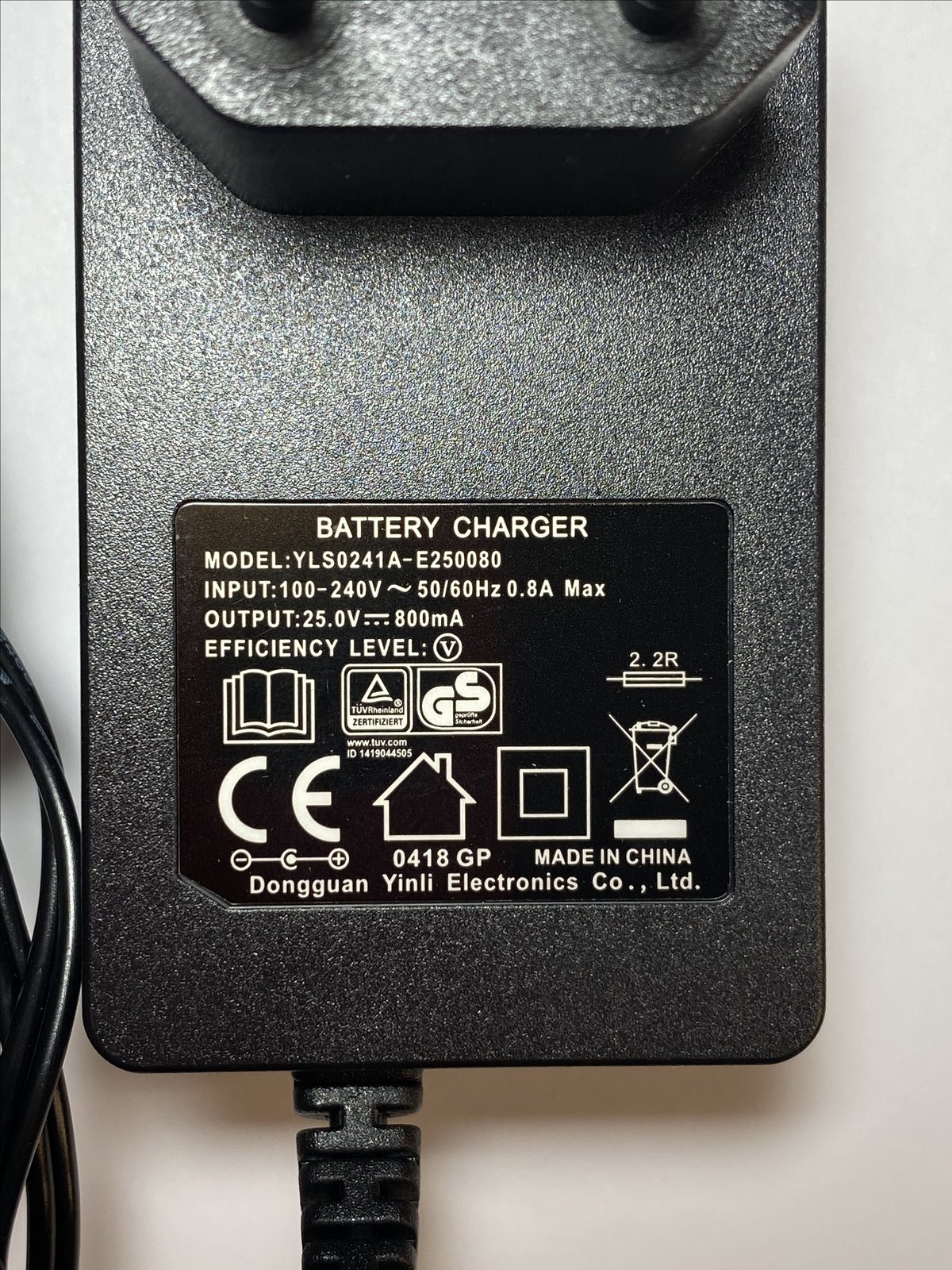 EU 25.0V 25V 0.8A 800mA Battery Charger model YLS0241A-E250080 25.0V 800mA