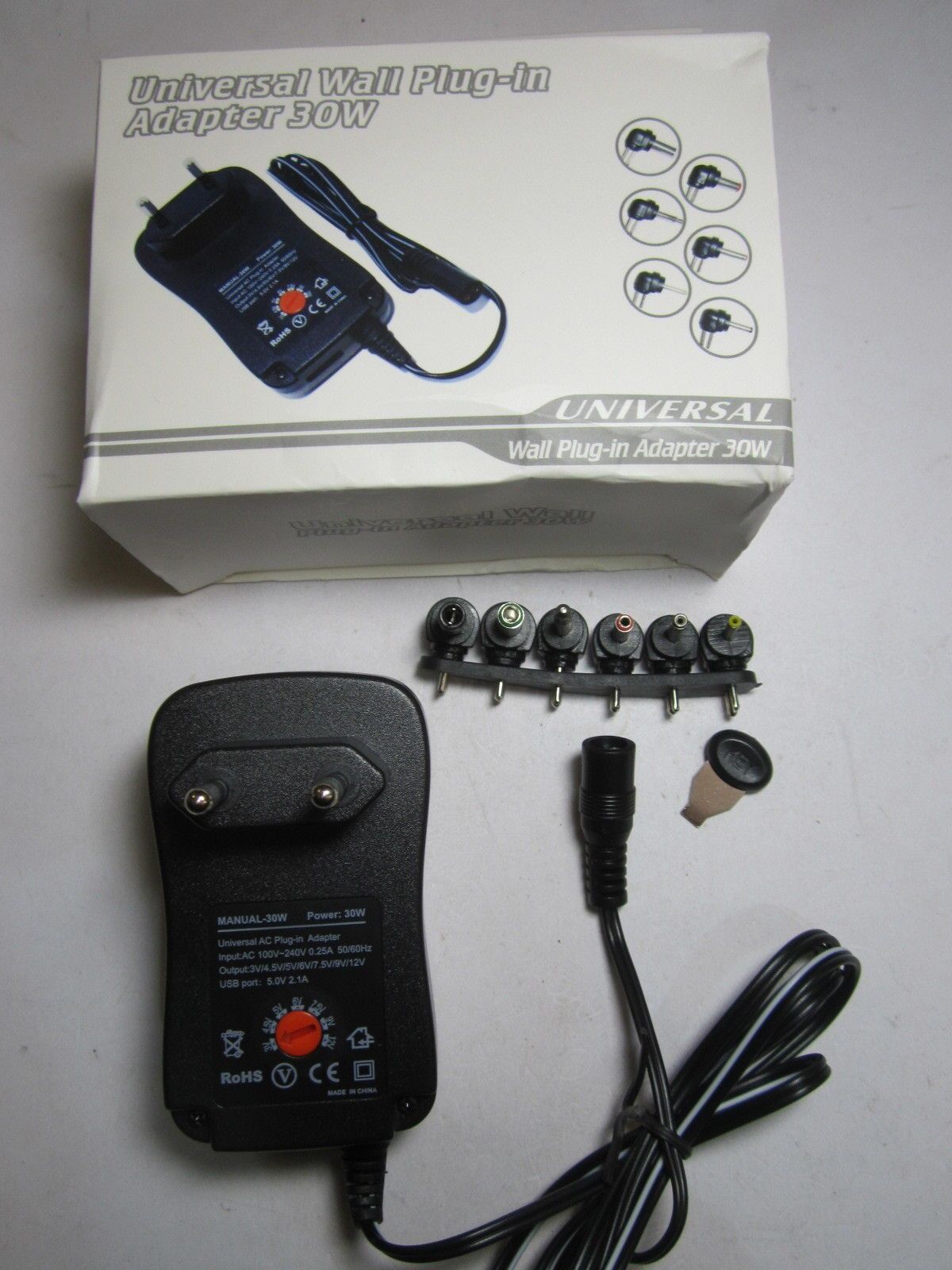 EU 3V/4.5V/5V/6V/7.5V/9V/12V 30W Universal Switching Adapter Power Supply + 6 Tips