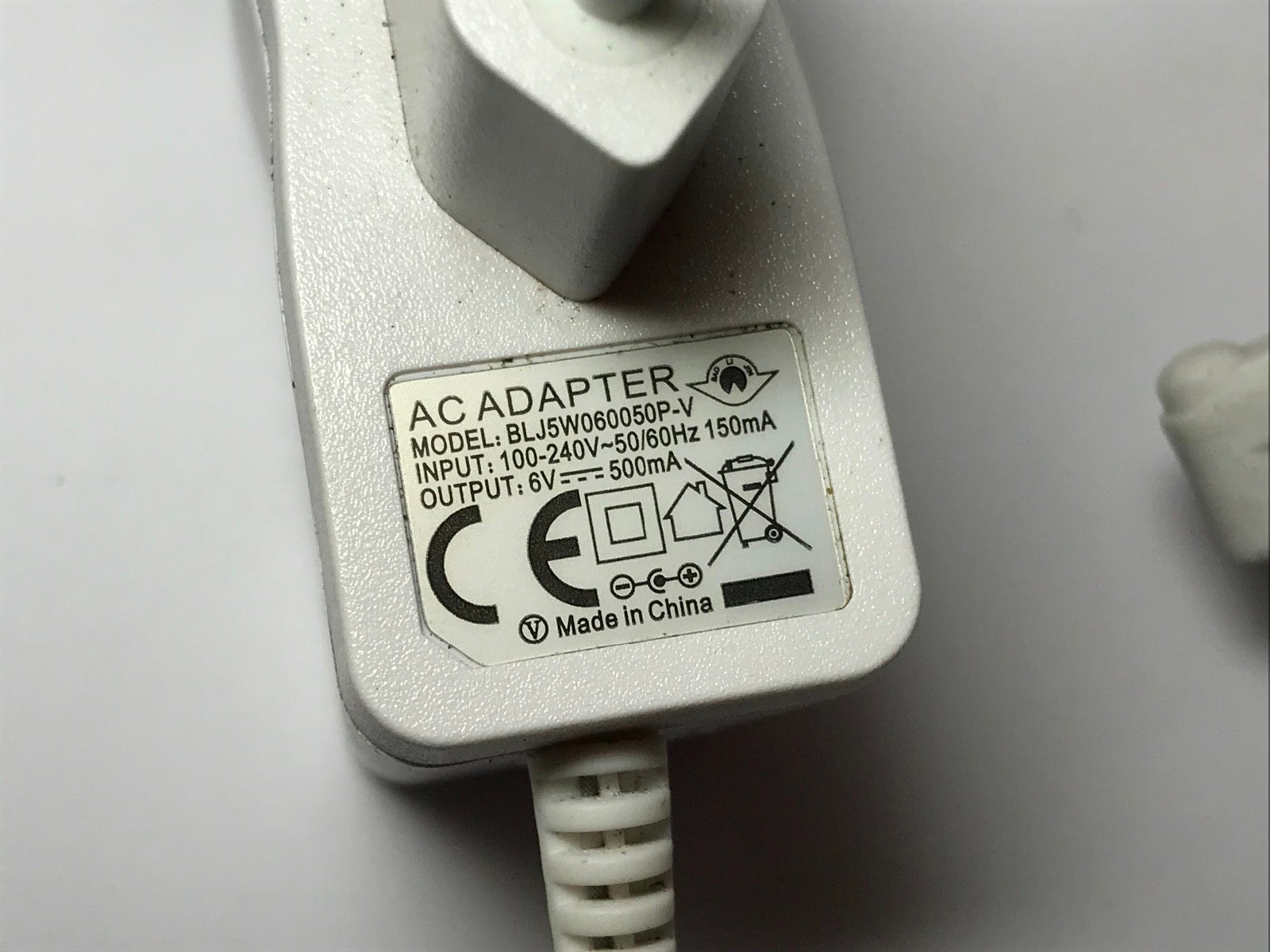 EU Genuine White 6V 500mA AC ADAPTER BLJ5W060050P-V Baby Monitor Charger Plug