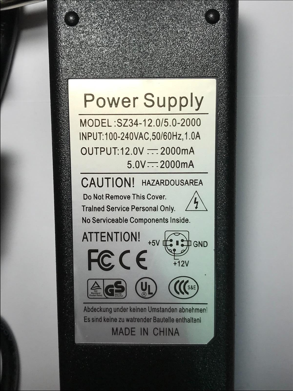 EU Plug 12V 5V 2A 2000mA 5 Pin AC-DC Switching Adaptor Power Supply