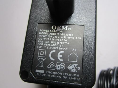 Genuine EU 2 Pin OEM Power Adaptor model ADS0181-B220082 22V 0.82A DSL36782750