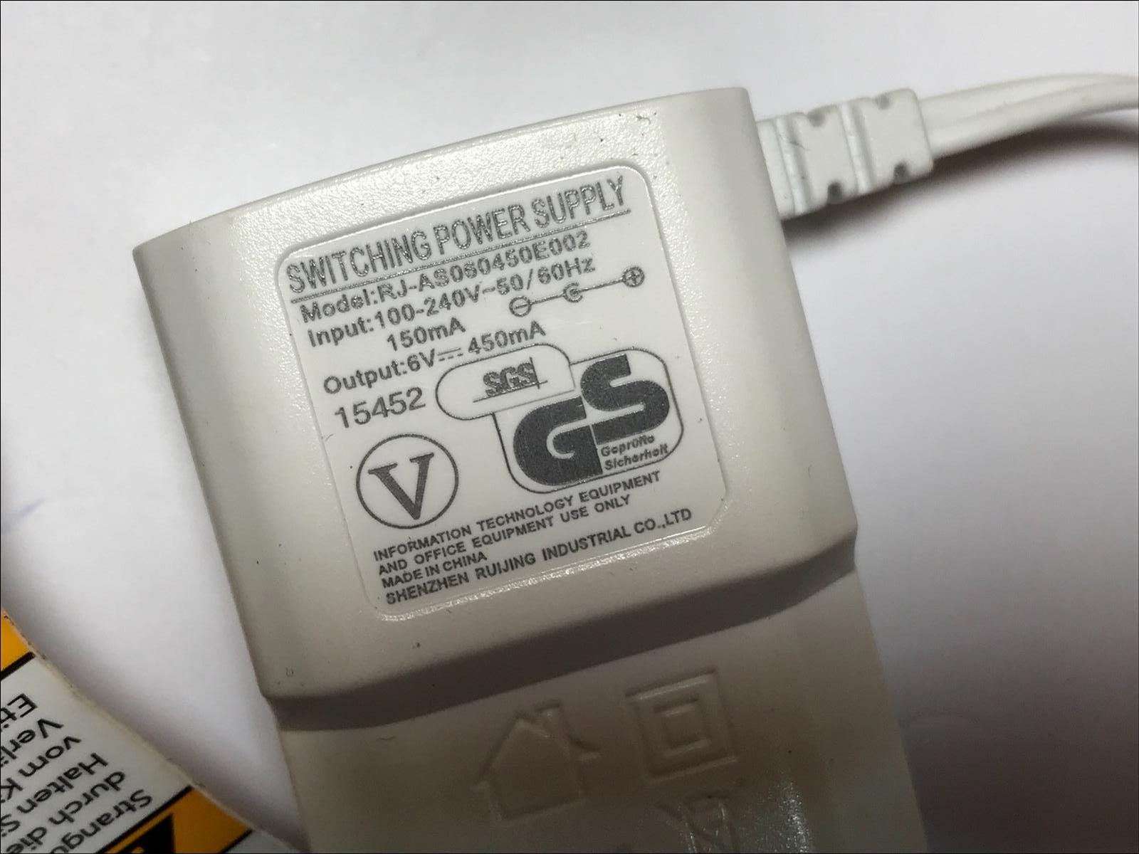 Genuine EU 6V 450mA Switching Power Supply RJ-AS060450E002 Monitor Charger THICK