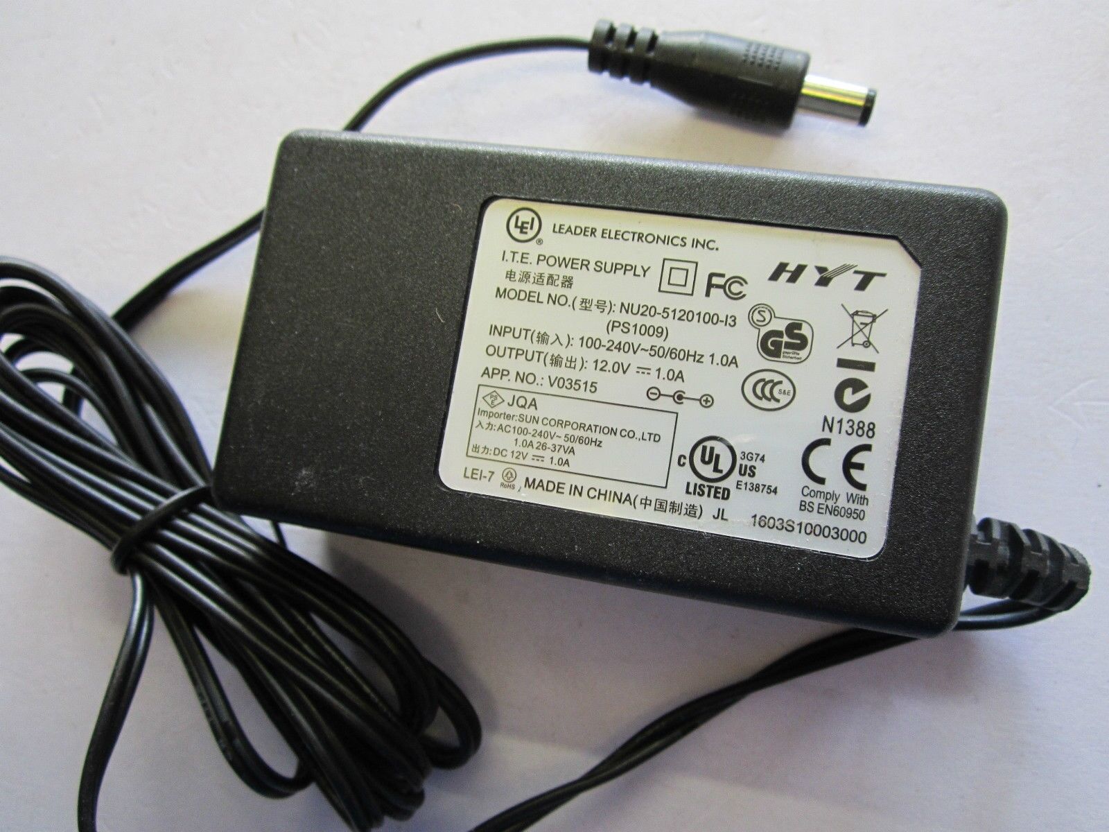 Genuine Leader Electronics INC I.T.E AC-DC ADAPTOR NU20-5120100-I3 12.0V 1.0A