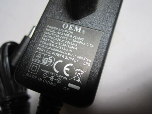 Genuine OEM Power Adaptor model ADS18B-B 220082 22V 818mA DSL3611006A ADS18-A-N