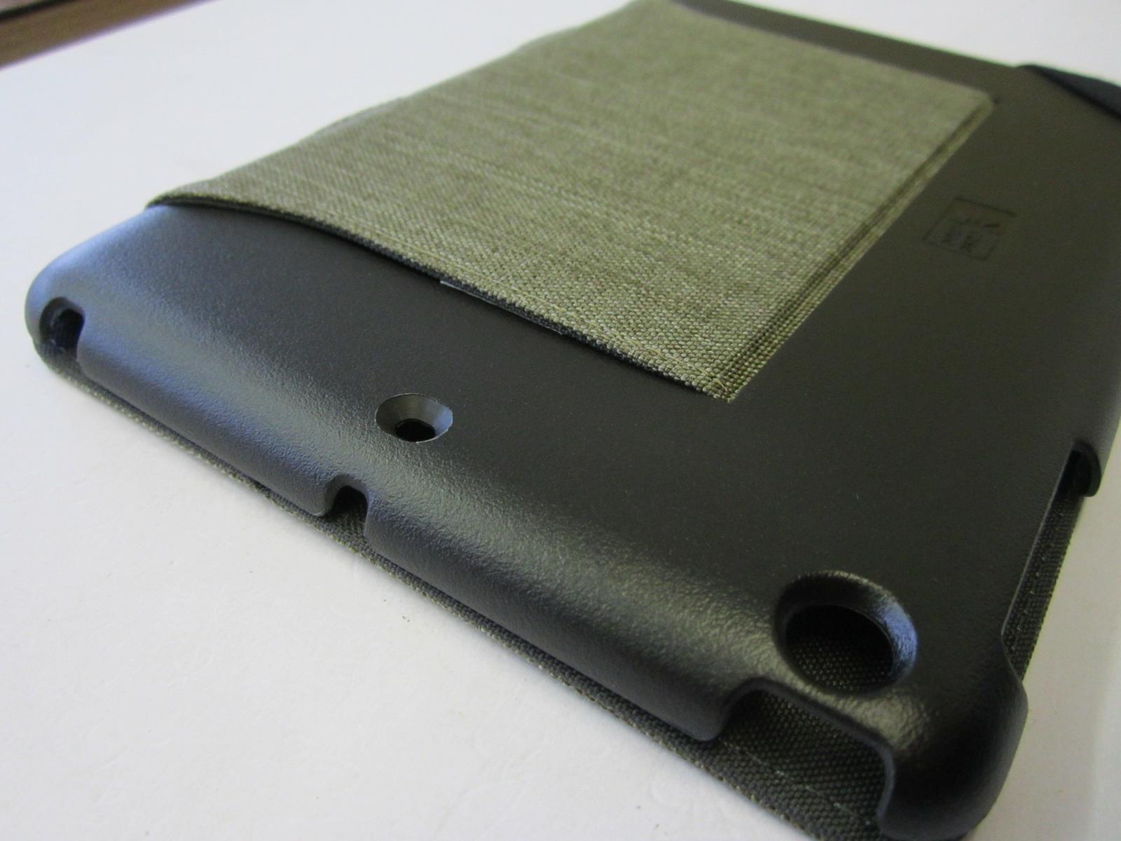 The Ipad Mini clips into the Hard Shell back which has all the holes for Camera, Microphone, Volume, Charger etc.