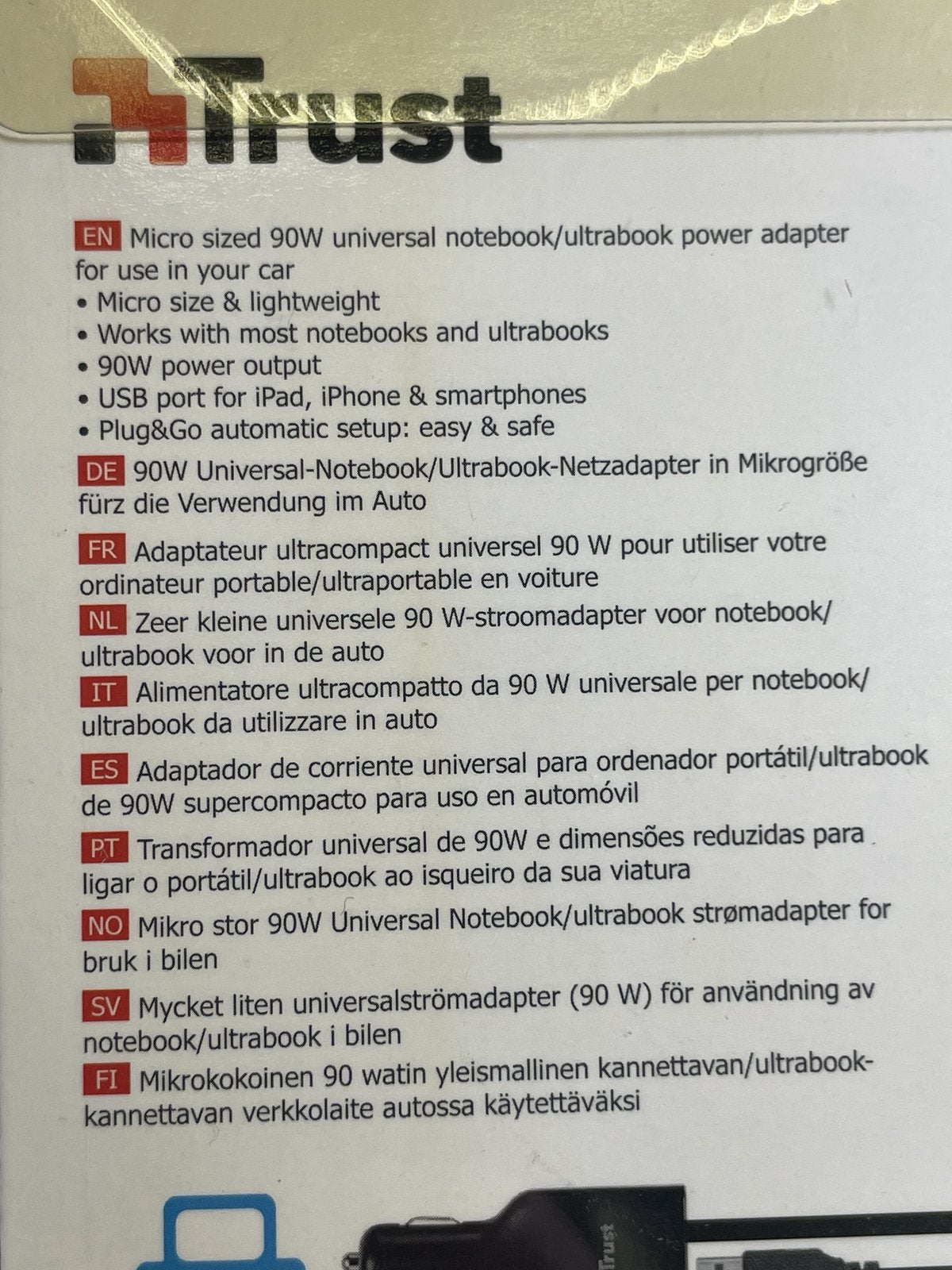 Notebook with compatible power rating and connection (see www.trust.com/18507 for complete compatibility overview)