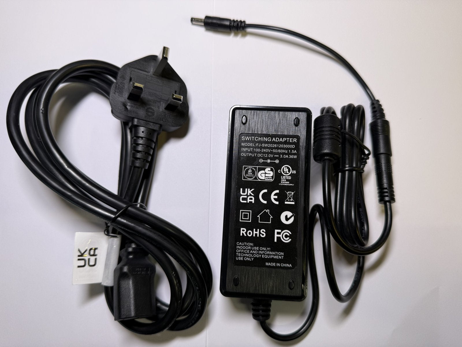 Replacement for 12V 3A AC-DC Switching Adaptor Power Supply 4mm x 1.7mm DC Plug