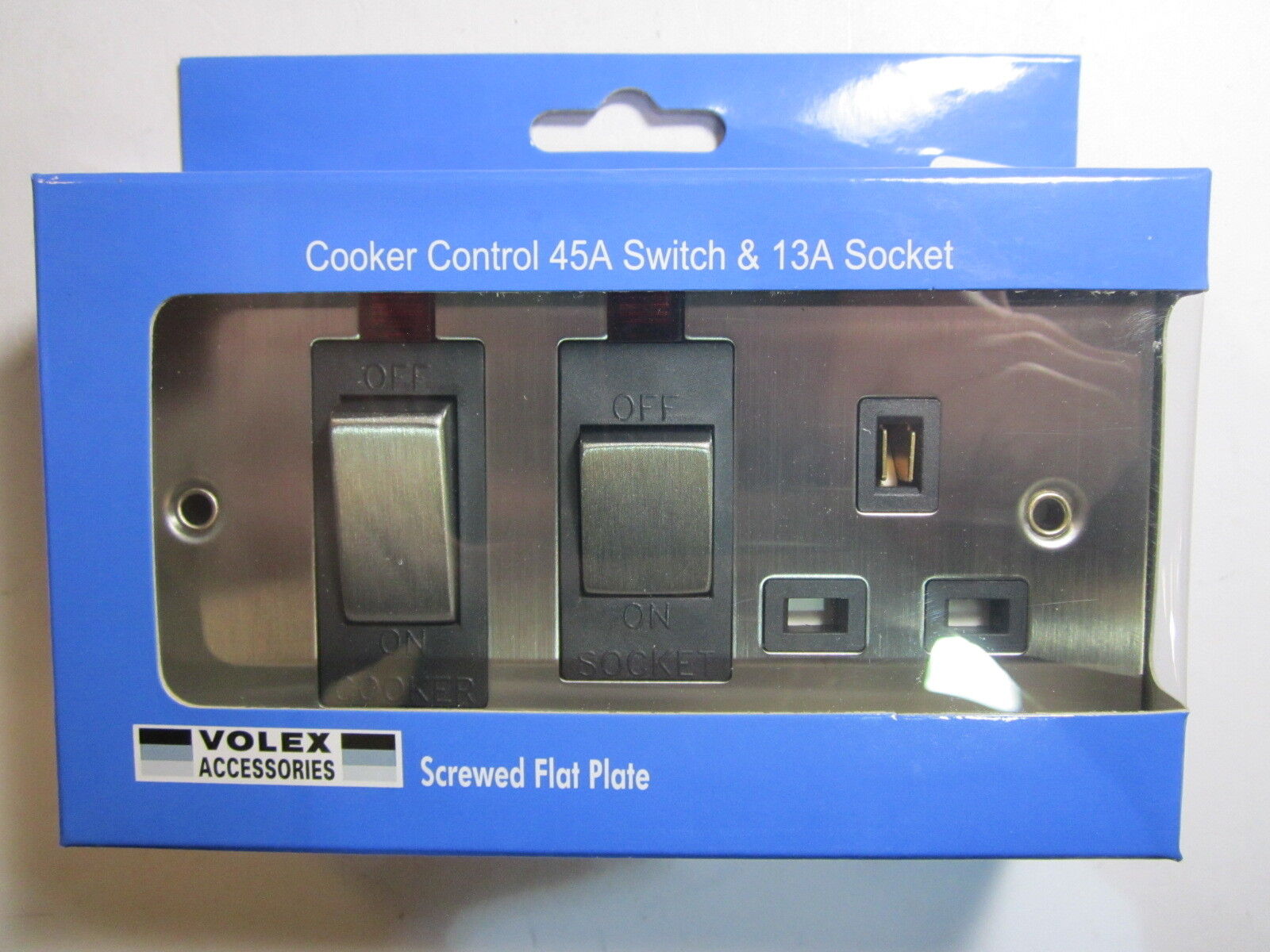 Volex Cooker Control 45A Switch 13A Socket Neon Black Interior Stainless Steel