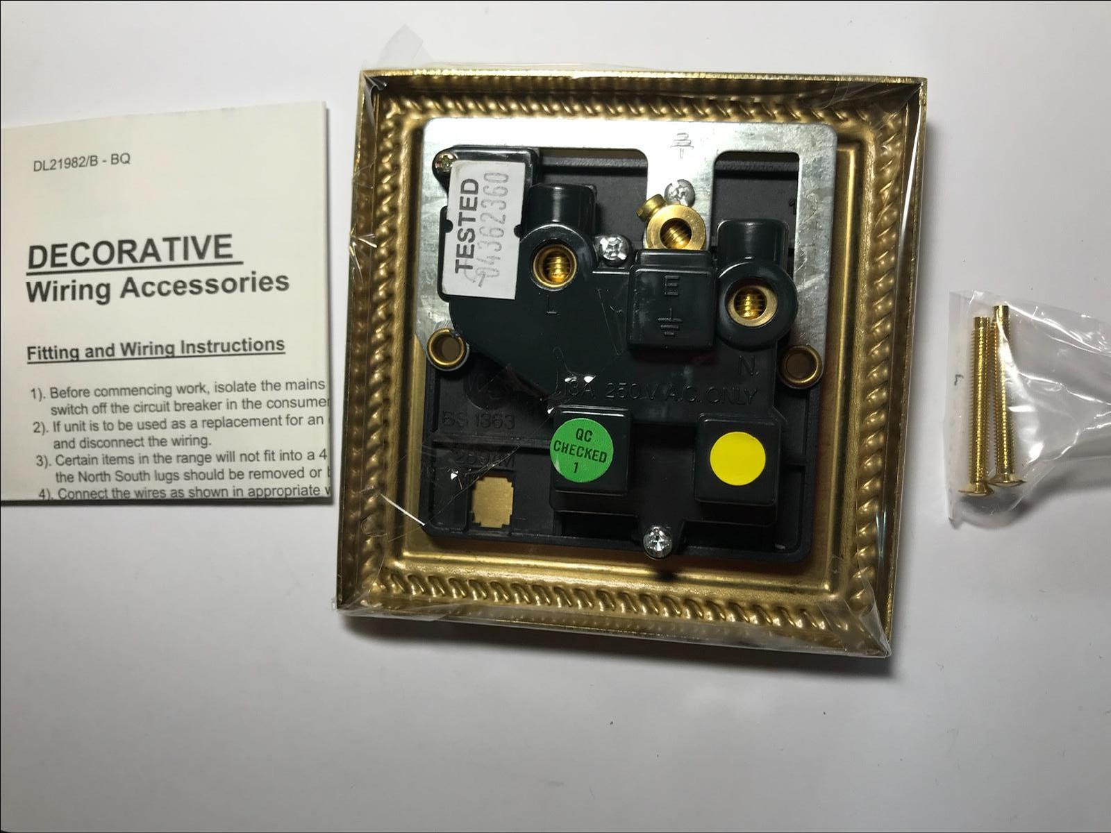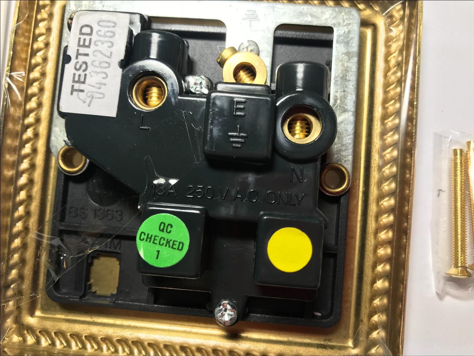 Volex Socket Single Switched 13A Single Pole Black Interior Georgian Style Brass